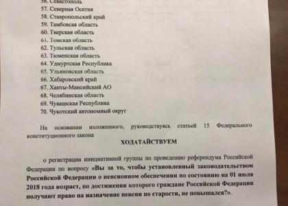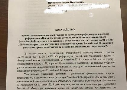 Первый секретарь Алтайского краевого комитета КПРФ Мария Прусакова, которая стала одним из организаторов собрания федеральной инициативной группы, подтвердила ТАСС, что документы для пенсионного референдума были поданы в ЦИК 8 октября.