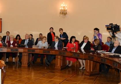 Затем слово было предоставлено Первому секретарю ЦК ВЛКСМ (в 1968 – 1977 годах) Е.М. Тяжельникову. Евгений Михайлович является одним из сопредседателей международного Оргкомитета КОМСОМОЛУ-100. Он рассказал, что в рамках этой организации была проведена большая работа. Вышли из печати книги о комсомоле и студенческих отрядах, фотоальбомы, посвященные юбилею. Так, в Госдуме прошла презентация книги «Студенческий комсомол», фотолетопись московского комсомола представлена в красочном издании «Москва молодая». Во многих регионах прошли научно-практические конференции. Юбилею ВЛКСМ будет посвящен праздничный концерт, который пройдет в государственном Кремлевском Дворце. Е.М. Тяжельников подчеркнул, что созидательный опыт ВЛКСМ должен быть востребован в наши дни на государственном уровне для работы с молодежью.