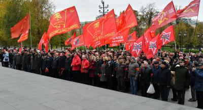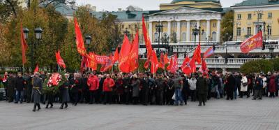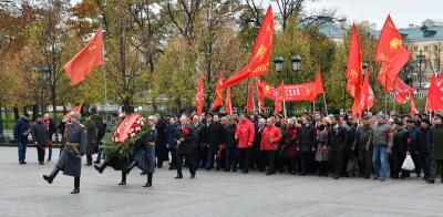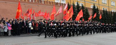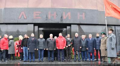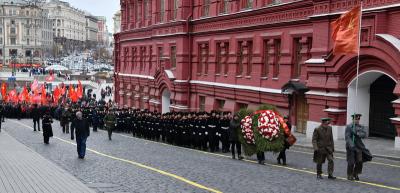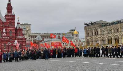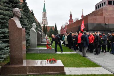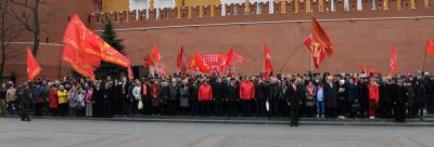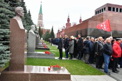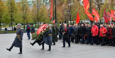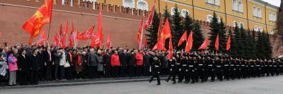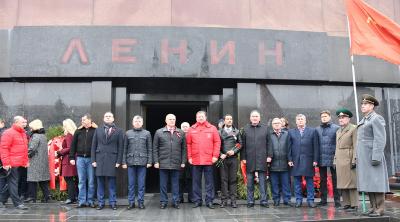 поколений, коммунисты и сторонники партии возложили цветы к Мавзолею В.И.