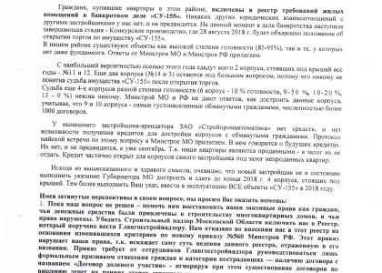 письмо, где граждане, вложившие деньги в строительство ЖК «Восточный», выражали