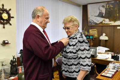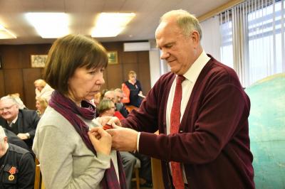 20 ноября Г.А. Зюганов наградил памятными орденами ЦК КПРФ в честь 100-летия Ленинского Комсомола коллектив газеты «Правда».