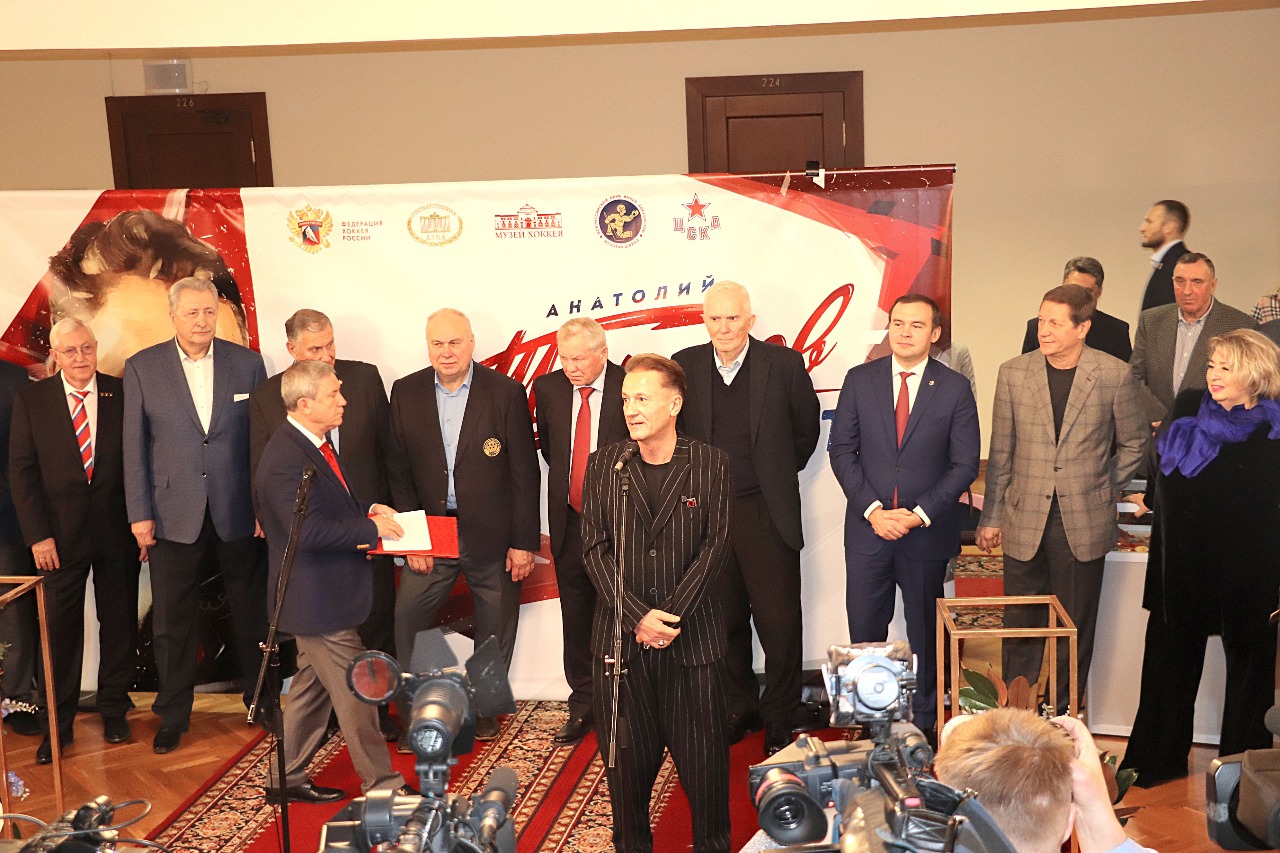На открытие выставки собрались легендарные хоккеисты, игравшие под руководством Анатолия Тарасова (Александр Якушев, Борис Михайлов, Владислав Третьяк и другие), его дочь и выдающийся тренер по фигурному катанию Татьяна Тарасова, народный артист России Олег Меньшиков, сыгравший роль Тарасова в российском фильме «Легенда № 17», зампред правительства России Ольга Голодец, представители всех фракций Государственной Думы.