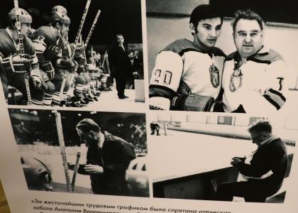 На выставке представлено большое число уникальных фотографий и личные вещи Анатолия Владимировича Тарасова.