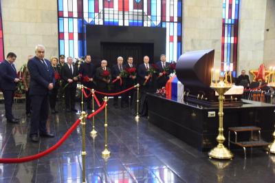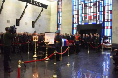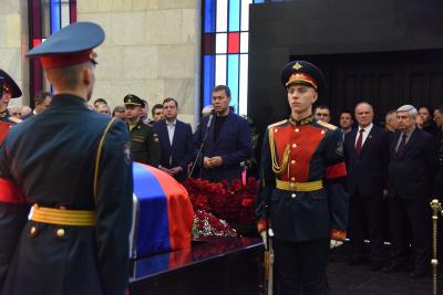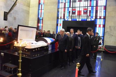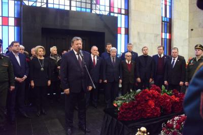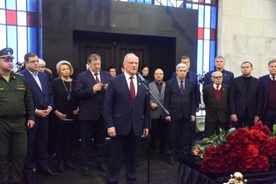 Церемонию проощания вел заместитель Председателя ЦК КПРФ В.И. Кашин. В ней приняла участие делегация представителей Компартии во главе с Председателем ЦК КПРФ Г.А. Зюгановым.