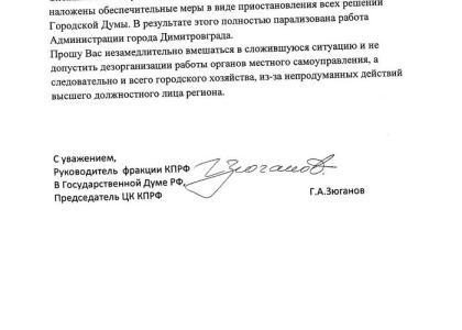 связанных с избранием Главы города», пишет Зюганов. Лидер партии просит