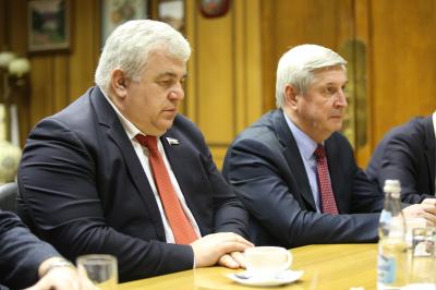 В беседе также принял участие депутат Государственной Думы, член фракции КПРФ, руководитель группы дружбы Государственной Думы с Верховным народным собранием КНДР Казбек Тайсаев.