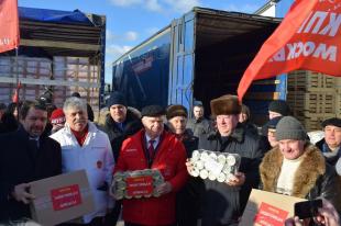 Я хочу в первую очередь поблагодарить наши народные предприятия. Значительную часть груза прислали из Иркутска, Казани, республики Марий Эл. С Юга России готовится большой груз с уникальной продукцией. Также хочу поблагодарить, конечно, Подмосковье, которое делает всё для того, чтобы этот груз был наполнен всеми необходимыми продуктами и вещами. Снова Серпуховский РК КПРФ прислал 2,5 тонны уникальной продукции. Луховицы, Подольск особенно отличились в этом конвое. По большому счёту, всех не перечислить – здесь и коломенские товарищи. Ассоциации министерств и ведомств также поддержали нас в этом конвое. Из Брянска привезли замечательные твёрдые сыры. С Севера России пришли рыбные консервы. Ассоциация хлебобулочных изделий также направила на погрузочную площадку свою продукцию. Мёд тоже прислали наши товарищи, которые переживают за братский народ Донбасса. Я хочу также поблагодарить тех, кто ждёт нас на этом маршруте: две тонны груза подготовили воронежцы; как всегда, с нами вместе работают туляки; Липецкая область, Курская, Юг России.