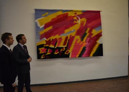 В этот же день Юрий Афонин и Владимир Исаков посетили выставку гобеленов и графических работ московского художника Ольги Толстиковой. Бóльшая часть экспонируемых произведений посвящена как войнам, так и событиям «Русской весны» 2014 года.