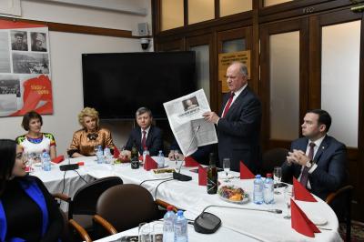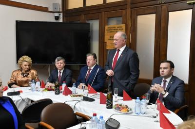 В церемонии поздравления также приняли участие заместители Председателя ЦК КПРФ Ю.В. Афонин, В.И. Кашин и Д.Г. Новиков, Руководитель аппарата фракции КПРФ в Государственной Думе Н.А. Останина.
