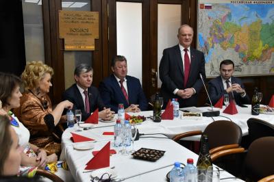 7 марта, в преддверии Международного женского дня, Председатель ЦК КПРФ, Руководитель фракции КПРФ в Государственной Думе Г.А. Зюганов поздравил с праздником сотрудниц аппарата ЦК КПРФ и фракции КПРФ в Госдуме.