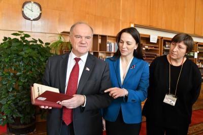 Лидер КПРФ ознакомился с этими редкими книгами.