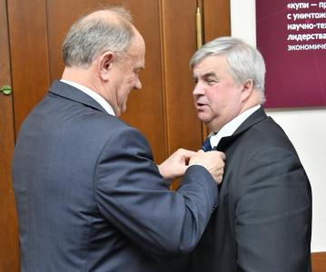 В торжественной церемонии приняли участие заместители Председателя ЦК КПРФ В.И. Кашин и Д.Г. Новиков, секретарь ЦК КПРФ М.С. Костриков. Среди награжденных – дважды Герой Советского Союза, летчик-космонавт СССР, депутат фракции КПРФ в Государственной Думе С.Е. Савицкая.