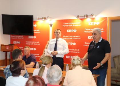 Заместитель Председателя ЦК КПРФ Ю.В. Афонин в рамках рабочего визита в Крым провел совещание с активом Севастопольского горкома КПРФ.