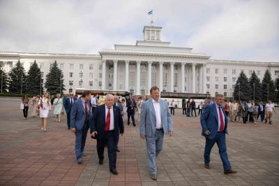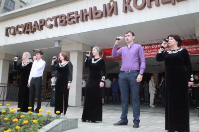 завершении встречи на площади перед государственным концертным залом КБР делегацию