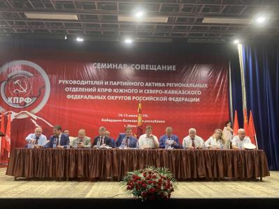 15 июня в городе Нальчике Кабардино-Балкарской Республики под председательством заместителя Председателя ЦК КПРФ, академика РАН, Председателя Комитета Государственной Думы по аграрным вопросам Владимира Ивановича Кашина прошел семинар-совещание руководителей и партийного актива региональных отделений КПРФ Южного и Северо-Кавказского федеральных округов.