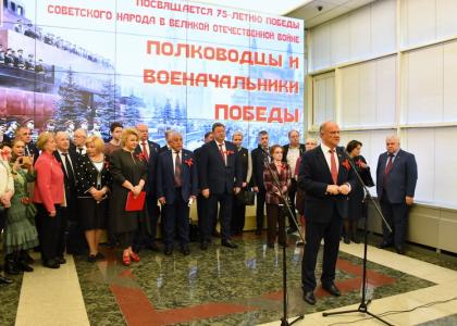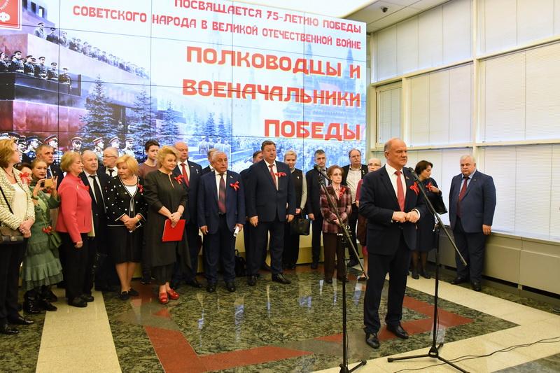 6 ноября в Государственной Думе в преддверии праздника Великой Октябрьской социалистической революции открылась выставка «Полководцы и военачальники Победы» (организаторы выставки – фракция КПРФ в Госдуме и Фонд памяти полководцев Победы). На церемонии открытия выступил Председатель ЦК КПРФ, Руководитель фракции КПРФ в Государственной Думе Г.А. Зюганов.