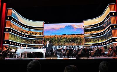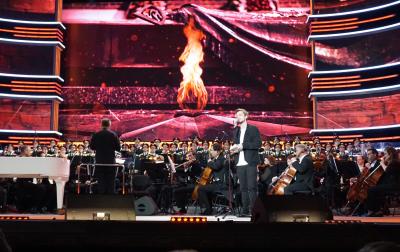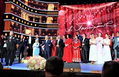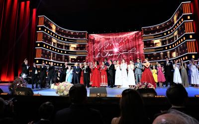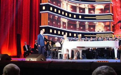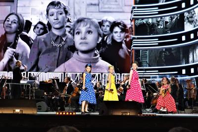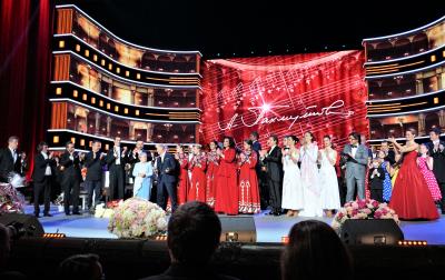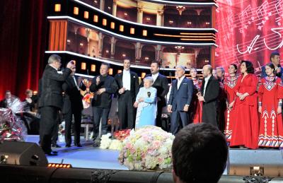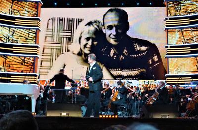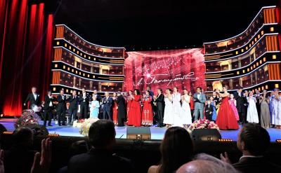 В этот вечер здесь царила совершенно особая атмосфера. На сцене – поистине великий советский композитор и многие выдающиеся исполнители. В зале – известные политики, представители культуры, спортсмены, личные друзья Александры Пахмутовой и Николая Добронравова. Слова в адрес юбиляра со сцены звучат только от коллег по цеху искусств и от президента страны. Атмосферу вечера определяют великие песни – песни строек, побед, свершений, песни любви к своей стране и своему народу.