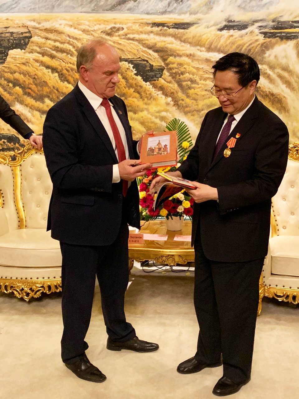 завершение встречи Г.А. Зюганов вручил товарищу Ван Гошэну памятную медаль ЦК