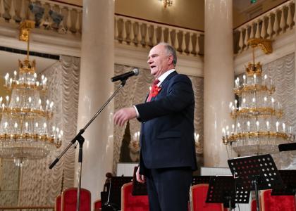 «Уважаемые товарищи. Мои друзья, - обратился к зрителям лидер КПРФ. - Сегодня в этом великолепном зале мы проводим вечер, посвященный полководцам Победы. Проводим его в честь 140-летия со Дня рождения товарища Сталина. Я приветствую и поздравляю вас с этой славной датой».