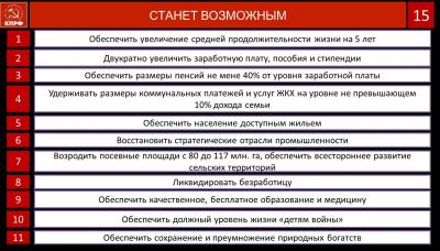 уровень жизни «детям войны», возродить стратегические отрасли промышленности,