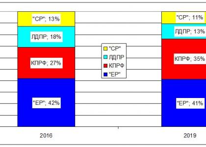 Что касается соответствия риторики партий общественному запросу, то пока лидерство «ЕР» сохраняется, но оно уже не столь бесспорно. Доля «ЕР» в общем объеме информсообщениях по ключевым вопросам национальной повестки дня немного упала – 41% в 2019 г. против 42% в 2016 г. Доля упоминаний КПРФ в публикациях по актуальным для населения проблемам выросла до 35,1% (рост на 7%). А вот ЛДПР не совсем «попадала» в «яблочко» доминирующих народных запросов: доля партии Жириновского упала с 18% до 10%. У «Справедливой России» также падение доли в атуальном событийном инфополе - с 13% до 11%.