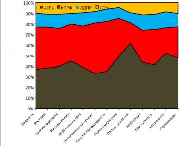 Заметим, что ни в одной теме, соответствующей главнейшим запросам населения, ЛДПР и «СР» не опередили КПРФ.