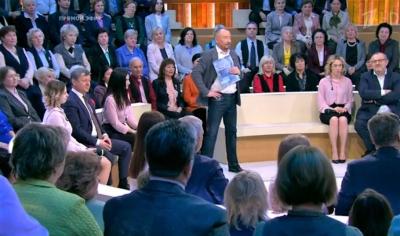 Одной из тем ежедневного ток-шоу Первого канала стало обсуждение конституционной реформы. Повод для этого дала встреча президента В.В. Путина с лидерами фракций Государственной думы, прошедшая в ночь с 5 на 6 марта и приуроченная ко второму чтению законопроекта о внесении изменений в Конституцию. В ходе встречи президент обратился к руководителям парламентских фракций с призывом поддержать разъяснительную работу с населением по линии своих партий. «…Практически авторами этого закона, этих решений должны быть граждане Российской Федерации, - заявил Путин. – Им здесь принадлежит главная, абсолютно определяющая роль».