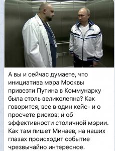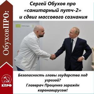 Доктор политических наук Сергей Обухов в социальных медиа проанализировал ситуацию, возникшую из-за «санитарного путча-2» и сдвига массового сознания. Ситуация становится весьма тревожной, так как к всеобщим опасениям из-за коронавируса добавились опасения за президента и правительство, которые контактировали с зараженным коронавирусом главным врачом больницы в Коммунарке Денисом Проценко. Помимо последствий для всего медперсонала больницы, с которыми контактировал главврач, мы имеем еще и последствия для первых лиц государства (уйдут ли на карантин? нет ли угрозы их здоровью? и т.п.)