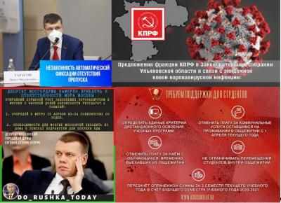 - При этом следует особо подчеркнуть, что в социальных сетях и СМИ ведется «роевая» атака на КПРФ с целью «навесить» на партию «вину» за распространнеие короновируса в глазах граждан РФ. Как повод используются факты болезни некоторых членов руководства КПРФ, а также офлайн акции КПРФ 22 апреля и 1 мая.