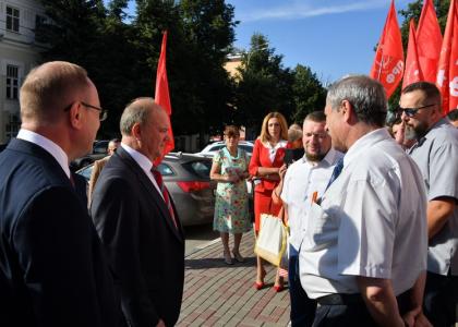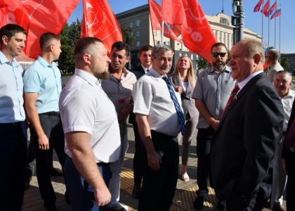 Утром лидер коммунистов возложил цветы к памятнику В.И. Ленину на центральной площади Орла. Цветы были также возложены к Стеле воинской славы на Бульваре Победы.