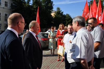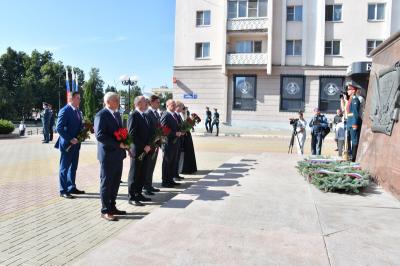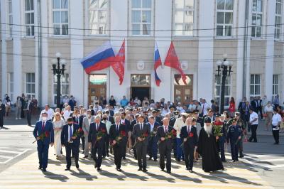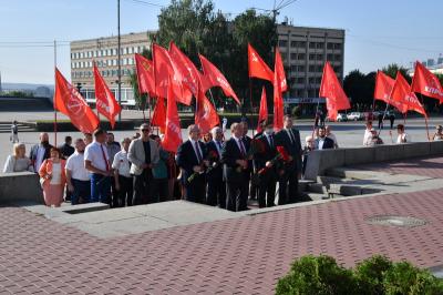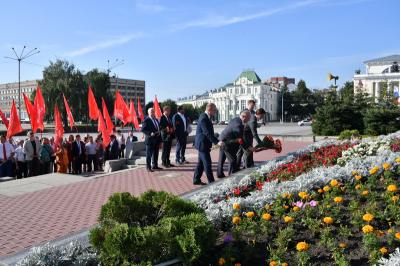 Утром лидер коммунистов возложил цветы к памятнику В.И. Ленину на центральной площади Орла. Цветы были также возложены к Стеле воинской славы на Бульваре Победы.