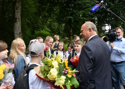 Геннадий Андреевич пообщался с учениками, их родителями и педагогами, осмотрел учебные классы. Также лидер КПРФ выступил на торжественной линейке, посвященной Дню знаний.
