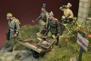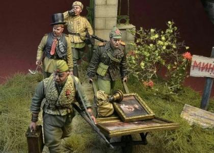 Теперь появился этот фантастически гнусный набор солдатиков. Стремясь представить военнослужащих Красной Армии как преступников-грабителей, их одели в какую-то мешанину из советской формы разных лет. Один из них везет в тачке украденный антиквариат, другой тащит чей-то чемодан, третий напялил на себя цилиндр, жилетку и обмотался галстуками, четвертый просто хлещет алкоголь из бутылки. Вот такое представление о советских солдатах должны получить европейские дети, которые будут играть с этими фигурками.