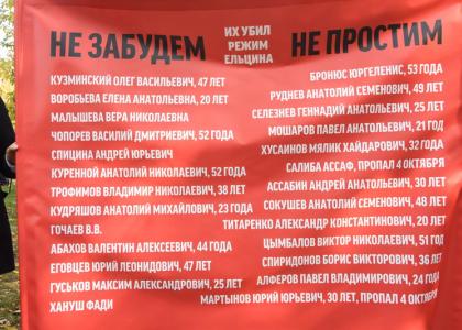 Мероприятие было посвящено памяти жертв трагедии 1993 года в городе Москве. Организаторы акции - ЦК КПРФ, Московские городской и областной комитеты Коммунистической партии РФ, Комитет памяти жертв трагических событий сентября–октября 1993 года и ряд других общественных организаций. Мероприятие проводилось под лозунгом «Не забудем! Не простим!».