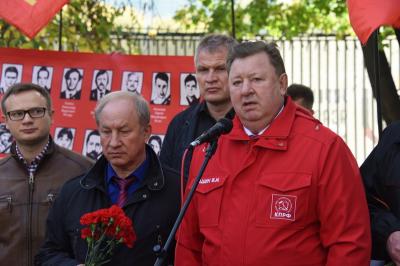 В.И. Кашин в своем выступлении выразил соболезнования родным и близким погибших в октябре 1993 года в Москве. «Защитники Советской власти своим подвигом зажгли яркую звезду, которая все эти годы освещала наш путь борьбы, как и звезда Великой Победы, которыми мы гордимся и которые никому не отдадим», - подчеркнул Владимир Иванович.