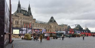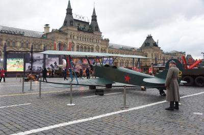 Здесь, на Красной площади, развернута экспозиция, посвященная Великой Победе 1945 года. Что нам обеспечило ту Победу? Победа мая 1945 года ковалась еще в октябре 1917 года. Распавшаяся и сгоревшая в Первой мировой войне Российская империя вновь собралась благодаря гению Владимира Ильича Ленина. Николай Второй втащил Россию в эту бойню только для того, чтобы защитить деньги и состояния банкиров Лондона, Парижа и Нью-Йорка.