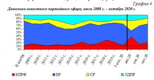 В течение июля 2008 г. – октября 2020 г. структура новостного партийного телеэфира менялась следующим образом (Гр.4):