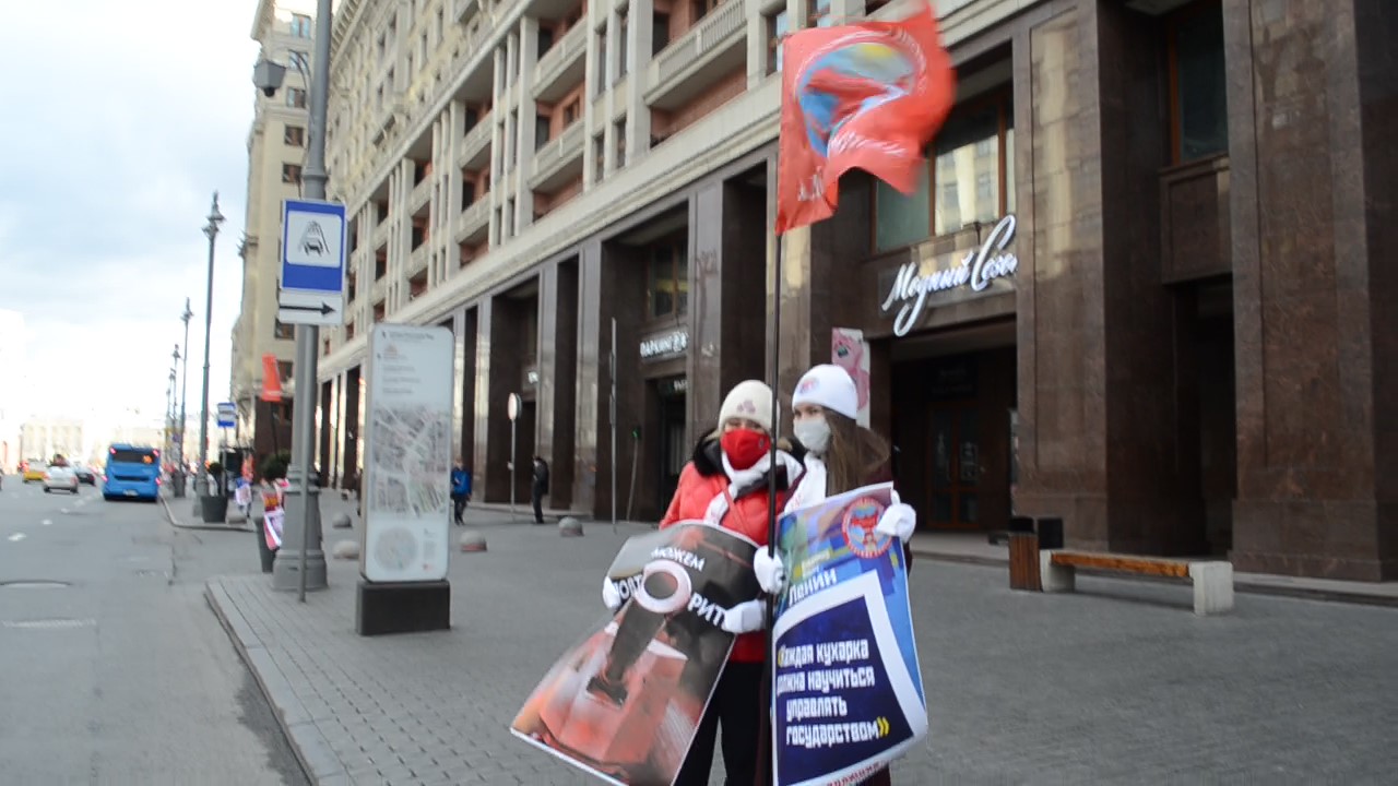 После возложения активистки выстроились в цепь одиночных пикетов на Манежной площади и Охотном ряду с красочными плакатами, изготовленными известным мастером Игорем Петрыгиным-Родионовым.