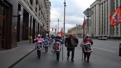 После возложения активистки выстроились в цепь одиночных пикетов на Манежной площади и Охотном ряду с красочными плакатами, изготовленными известным мастером Игорем Петрыгиным-Родионовым.