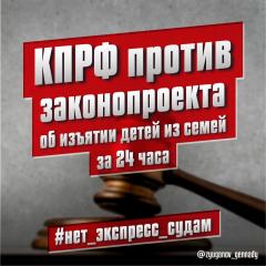❌Но вместо этого нам пытаются навязать провокационный закон, дающий право изымать детей из семей в течение 24 часов. Мы, КПРФ, выступаем категорически против данного безобразия. Также мы призываем все здоровые силы общества сплотиться и выступить против этого законопроекта!