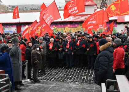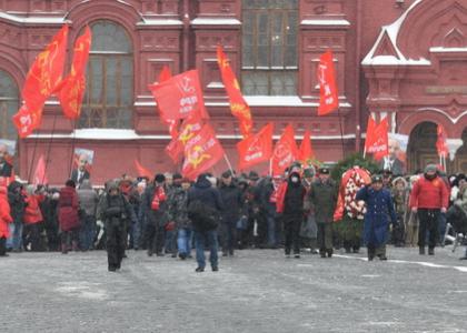 Колонну под красными флагами возглавили заместители Председателя ЦК КПРФ В.И. Кашин, Ю.В. Афонин и Д.Г. Новиков.