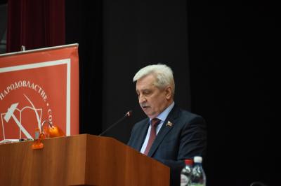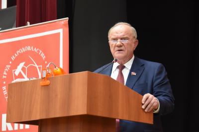 Затем с основным докладом перед собравшимися выступил Г.А. Зюганов.