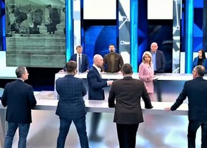Жаркую дискуссию в студии вызвали события на Донбассе. Президент Украины Владимир Зеленский обвиняет российскую сторону в отказе от переговоров в Нормандском формате и одновременно посещает позиции украинских войск. Прямо на этих позициях открыто вывешивают флаги фашистской Германии, что подтверждается видеосъёмкой.