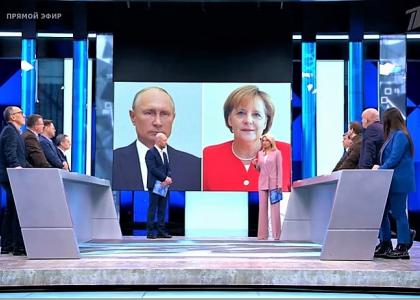 В политическом ток-шоу «Время покажет» речь шла об эскалации военной напряжённости на Донбассе. В ситуацию всё более открыто вмешиваются страны Запада. Канцлер Германии Ангела Меркель, например, потребовала от России сократить военное присутствие у границ Украины.