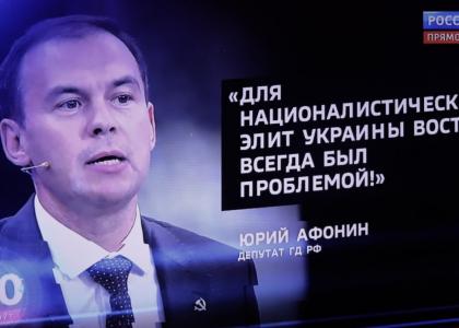 В студии показали запись интервью бывшего президента Украины Леонида Кравчука, который заявил, что «Донбасс – это раковая опухоль, которую нужно отрезать, чтобы Украина нормально развивалась». Юрий Афонин напомнил, что у Кравчука большой опыт в развале государств: в декабре 1991 года именно он вместе с Ельциным и Шушкевичем разрушил в Беловежье великий Советский Союз, в составе которого Украина развивалась высочайшими темпами, имела мощные промышленность и сельское хозяйство. Может быть, Кравчук уже в силу возраста не очень хорошо себя контролирует, но такими заявлениями он выдает потаенные желания украинской элиты – избавиться напрочь от русского мира, от людей с русским мышлением. «Я не раз был наблюдателем на украинских выборах и видел, как диаметрально противоположно голосуют на востоке и западе страны, – рассказал первый зампред ЦК. – Для украинской националистической элиты восток всегда был проблемой, мешал им захватить власть в стране законным путем – приходилось устраивать перевороты. Националистам не нужен Донбасс, но это приходится скрывать, поскольку обширны связи остального населения с населением Донбасса, и только вот такие кравчуки иногда проговариваются».