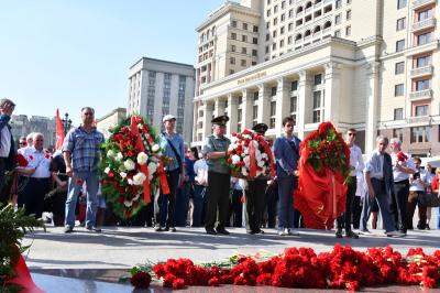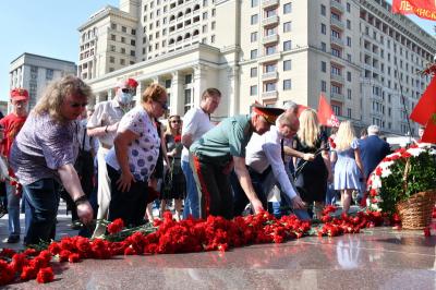 22 июня в Москве ЦК КПРФ, Московские городской и областной Комитеты Коммунистической партии Российской Федерации, Движения "В поддержку Армии", "Русский Лад", «Надежда России», Союз Советских офицеров, Общественная организация "Дети войны", Ленинский Коммунистической Союз Молодежи, РУСО, ряд других общественных объединений в канун 80-й годовщины начала Великой Отечественной войны 1941-1945 гг. провели в Москве церемонию в память жертв героических сражений с возложением венков и цветов к Вечному огню у Могилы Неизвестного Солдата в Александровском саду и памятнику Г.К. Жукову на Манежной площади. Колонну коммунистов возглавил заместитель Председателя ЦК КПРФ, Руководитель Общероссийского штаба протестных действий В.И. Кашин.