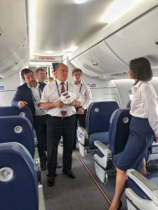 После этого лидер КПРФ осмотрел Sukhoi Business Jet (SBJ) – самолёт для полёта в максимально комфортных условиях. А затем он осмотрел МС-21-300, на борту которого теперь стало гораздо свободнее: ведь пространство увеличили вширь на 30 см. «Это заметно ощущается», – отметил Геннадий Андреевич.