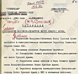 И 80 лет назад, 2 августа 1941 года Верховный Главнокомандующий И.В. Сталин отредактировал и лично утвердил Положение о Главном (именно Главном в сталинской редакции!) Управлении Воздушно-Десантных Войск Красной Армии, подчинив его непосредственно Народному Комиссару Обороны Союза ССР.