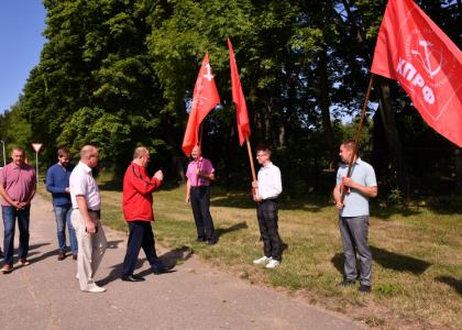На границе Орловской области своего земляка тепло встретили коммунисты во главе с первым секретарем обкома КПРФ, членом Совета Федерации РФ В.Н. Иконниковым.