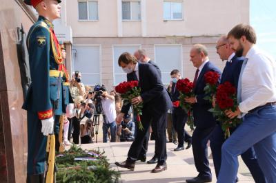 Почетные гости также возложили цветы к памятнику генералу Александру Горбатову, к бюстам Героев-разведчиков Ивана Санько и Василия Образцова и Героев России Александра Рязанцева и Алексея Скворцова.